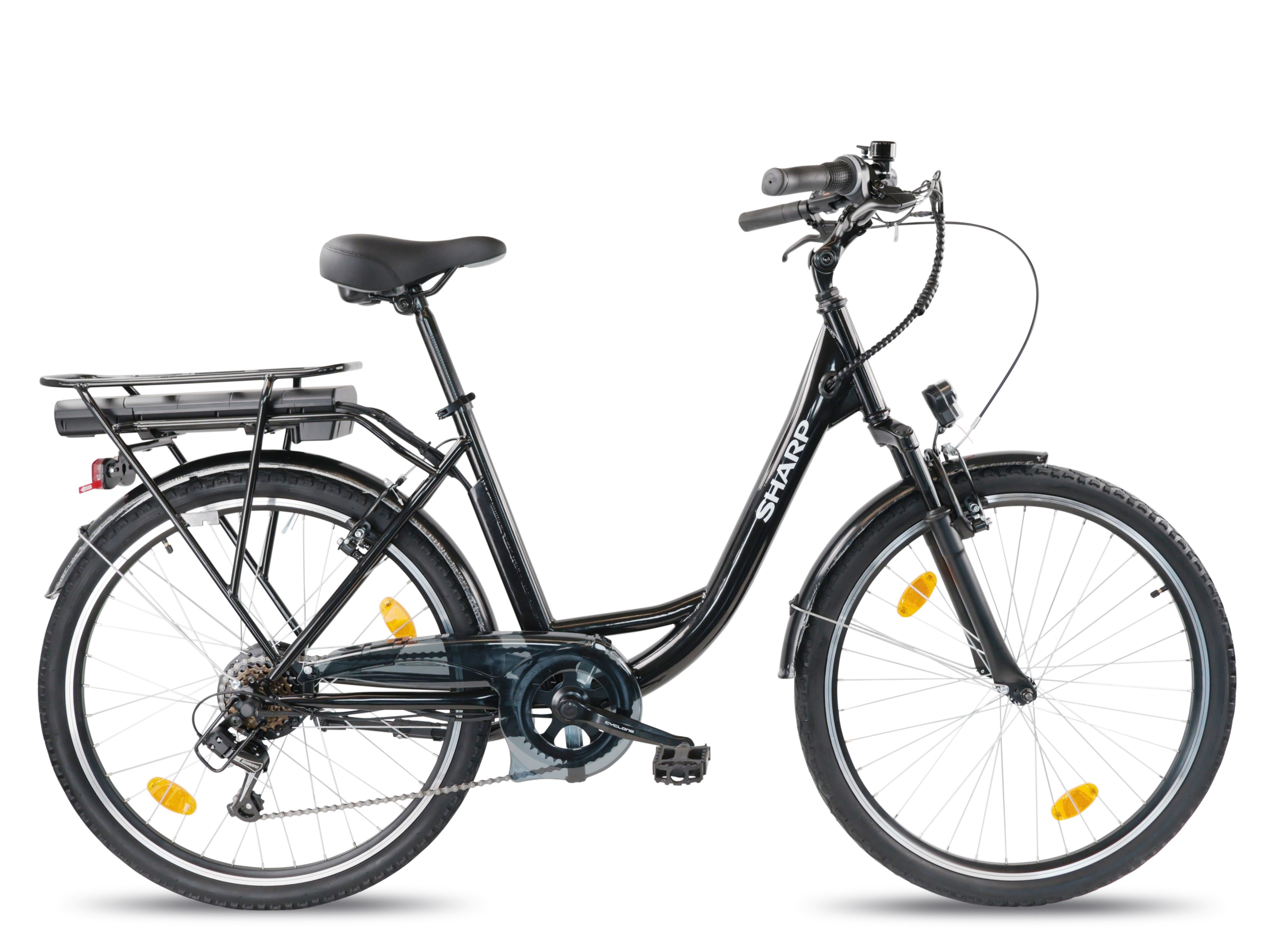 Introducing our new urban electric bike, perfect for daily commutes and relaxing rides around the city. It features a rear rack-mounted battery for extended power and convenience. The low entry design makes getting on and off effortless. With large 28-inch wheels, you can enjoy a smooth ride, and the 6-speed derailleur allows you to adjust your pace to any terrain. Opt for comfort and style with our urban electric bike!